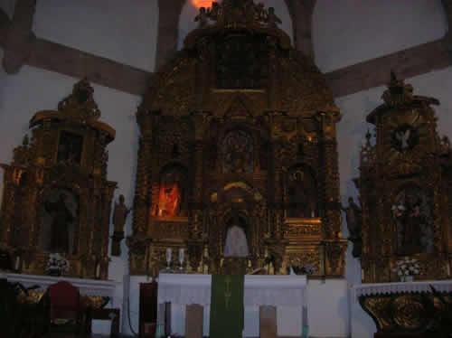 Los retablos son de estilo Barroco, pero de época tardía. El retablo central está compuesto de banco muy peraltado, un solo cuerpo y cierre y consta de tres calles. En el banco o predela aparecen cuatro ménsulas ornamentadas con cabezas de ángeles y motivos florales, ménsulas donde reposan las cuatro columnas. La peralda no es corrida, ya que en el centro se ve interrumpido por el Sagrario, que está envuelto en cuatro columnas y arco de medio punto con dos puertas giratorias y un remate en forma de pequeño casquete esférico, escoltado por dos querubines exentos y de bulto redondo. Rematando el Sagrario hay un arco alabeado. En la parte superior, encontramos la hornacina de la Virgen, con un arco de medio punto que alberga casetones florales y un fondo decorado con pinturas florales en rojo y verde. Las dos calles laterales son simétricas, compuestas de hornacinas sobre casetón floral de medio punto donde se albergan temas escultóricos.