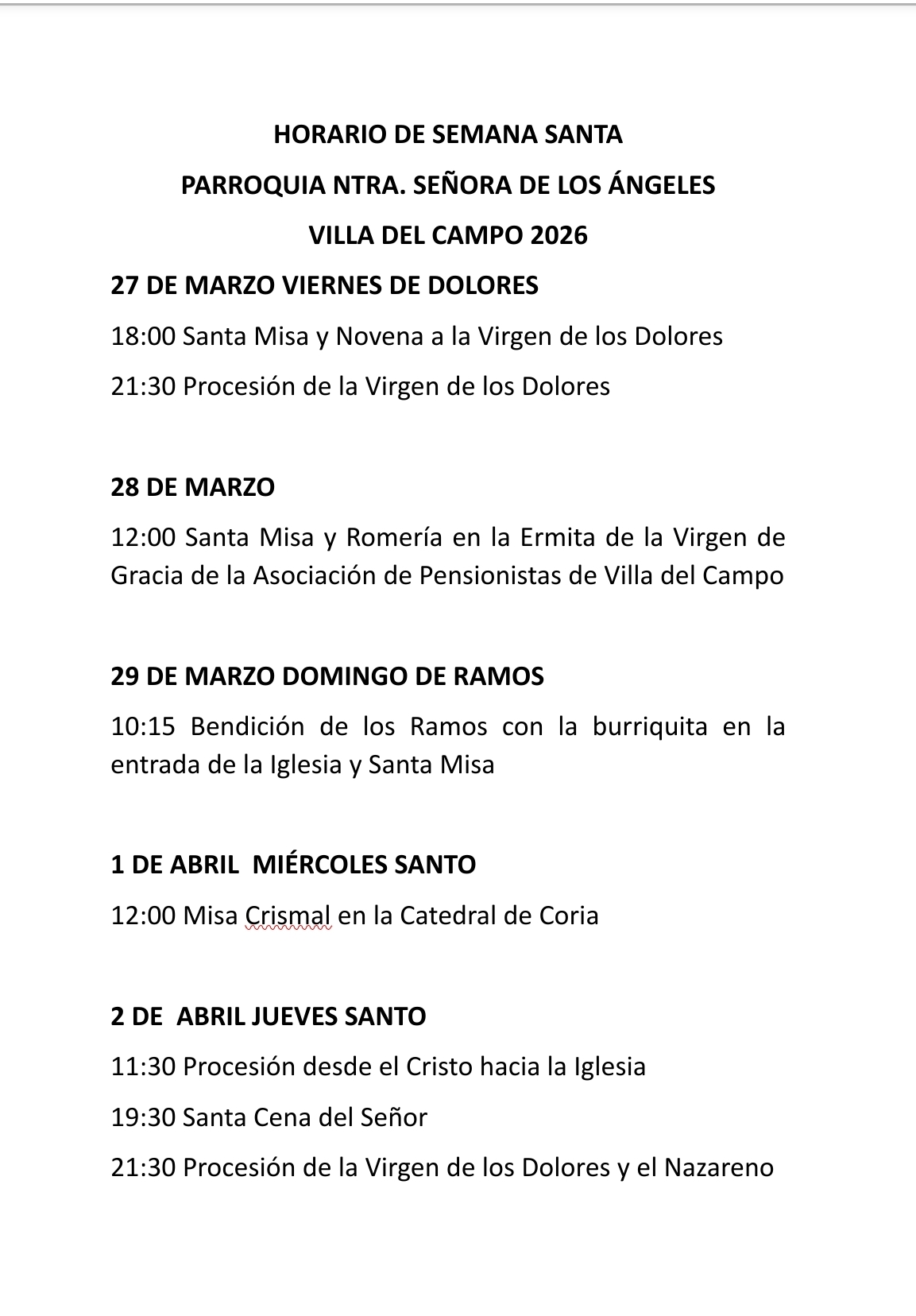 HORARIO DE SEMANA SANTA